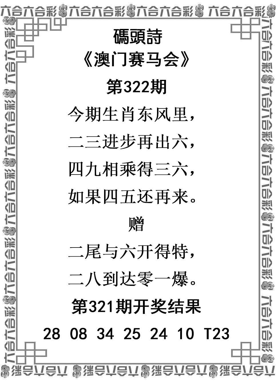 | 322期 323期 324期 | 三期必中(猪虎狗兔) | 开:?00 开:?00 开:?00 |